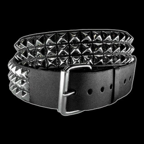 This 3 row silver pyramid stud leather belt is the ultimate accessory for any fan of punk, rock & roll and heavy metal music. Every good punk needs one!