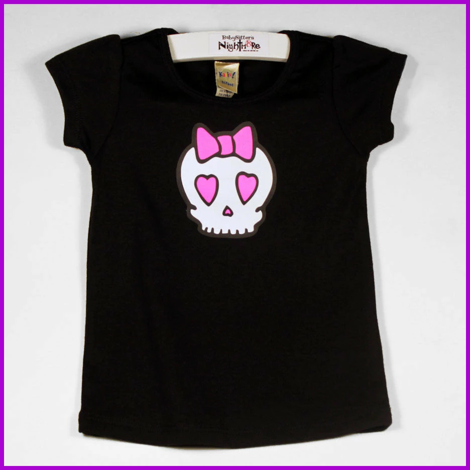Babysitter’s Nightmare- Skull And Heart Bow Tee Kid’s Stuff