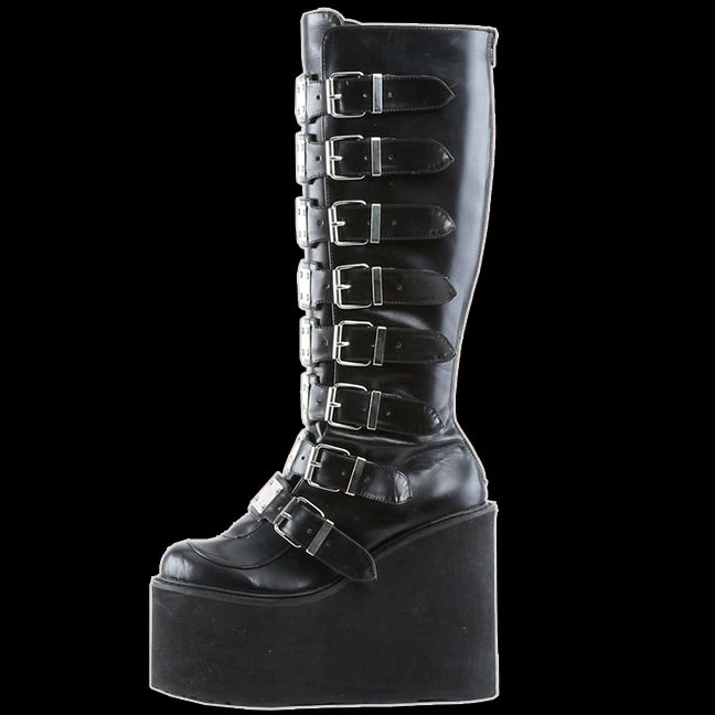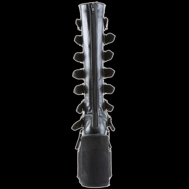 5 1/2″ (14cm) Wedge Platform Goth Punk Gogo Knee Boot with Metal Plates, Full Back Zipper