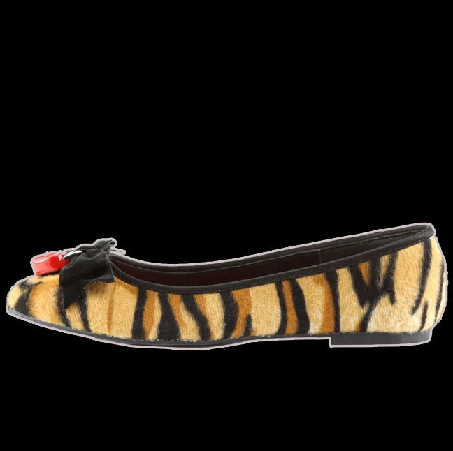 Tiger Print Flat with Bow & Red Padlock on Vamp and Piping Detail and Tiger Print