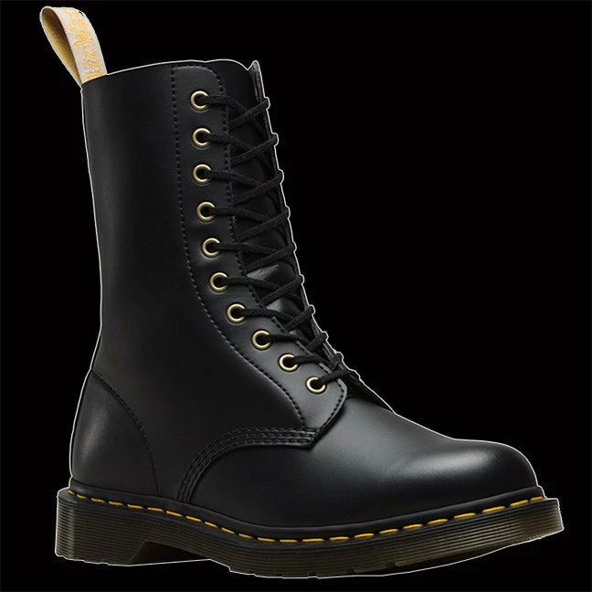 Born in the early 70s, the 1490 boot was adopted by subcultures — because our original 8-eye boot was police standard-issue at the time. An anti-establishment fashion statement, the 10-eye 1490 has been worn by goths, punks and other rebellious people ever since. This version is made with an all-vegan construction, including a matte black synthetic material — so you can rock Docs with no compromises.