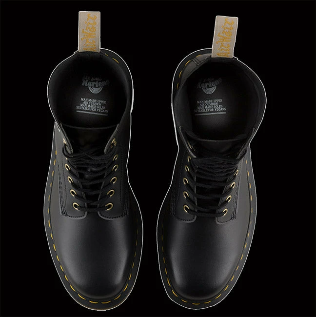 - Serves up classic Docs DNA, like grooved edges, a yellow welt stitch and a scripted heel loop (in yellow — which are on all our vegan styles)