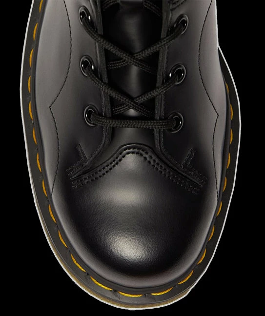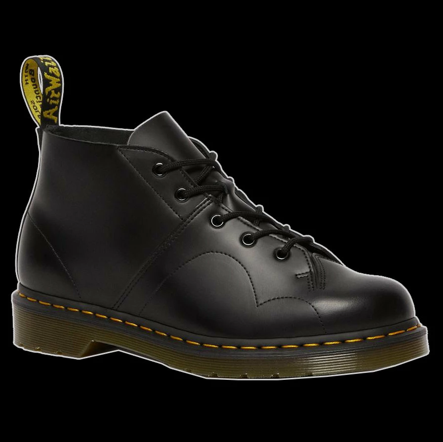 Straight from the archive. Our classic monkey boot has been given a revamp in tough Smooth leather. A sleek, slender silhouette with low-set laces, the Church is instantly recognizable as a Docs boot with yellow stitching and black and yellow heel loop.