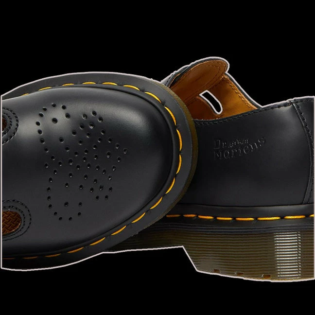 Back in the 80s, our 8065 shoe turned the tradition of impractical women’s footwear on its head. Fusing a classic T-bar fastening with a rugged AirWair sole, the well-trodden silhouette remains a favorite to this day. This edition stays true to the Original construction, with tough Smooth leather and our signature yellow welt stitching.