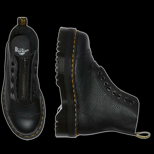 We took the rugged commando tread and military style of the jungle boot, and put our spin on it. The result? The Sinclair, an 8-eye women’s boot with tons of tough Doc’s attitude, including two ways to fasten — laces and a zipper — plus puritan stitching on the toe-cap and a chunky, empowering platform sole.