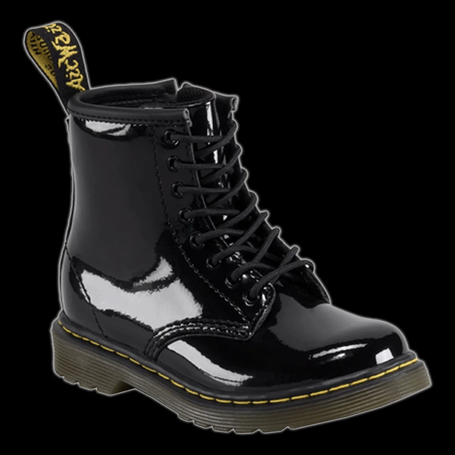 Made with a soft, durable black patent leather upper. This boot also features some of Dr Martens classic looks, such as yellow stitching, and a heel loop.