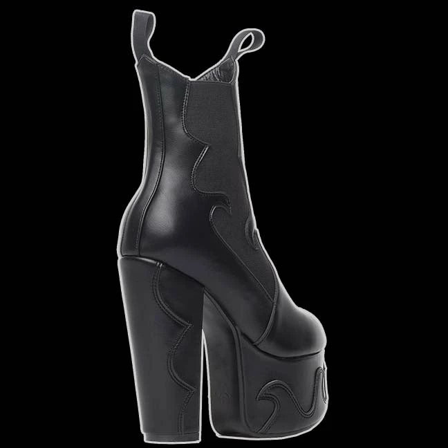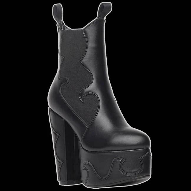 Features include black loops to the front and back of the boots. Features also include a designer western style gusset. All on our CHUNKY Platform Sole.